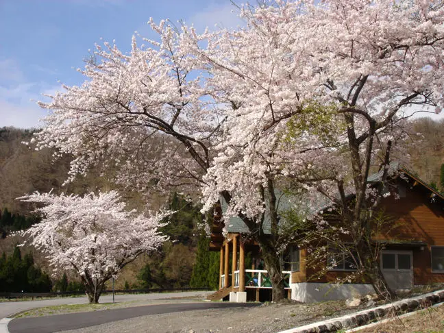 霊峰白山の南山麓・熊ヶ岳(標高600m〜700m)に展開するコテージ村「油坂さくらパーク」はその名の示すように桜をメインコンセプトに整備されています。